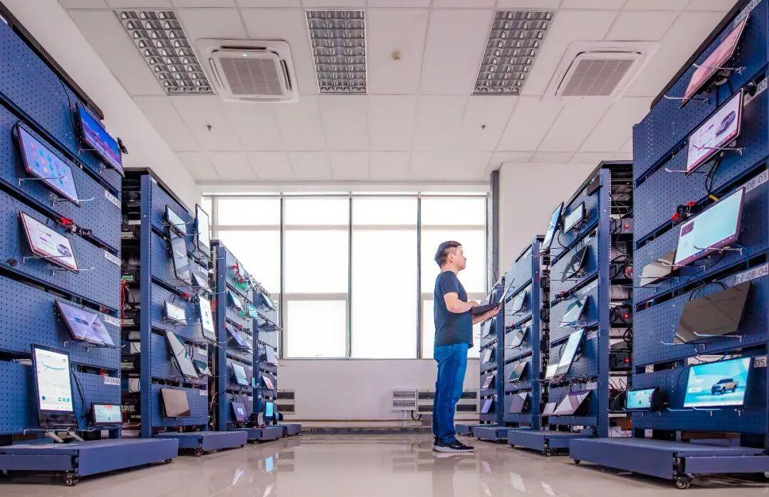 东风汽车研发总院工程师正在自动化测试实验室进行测试。记者陈亮 摄