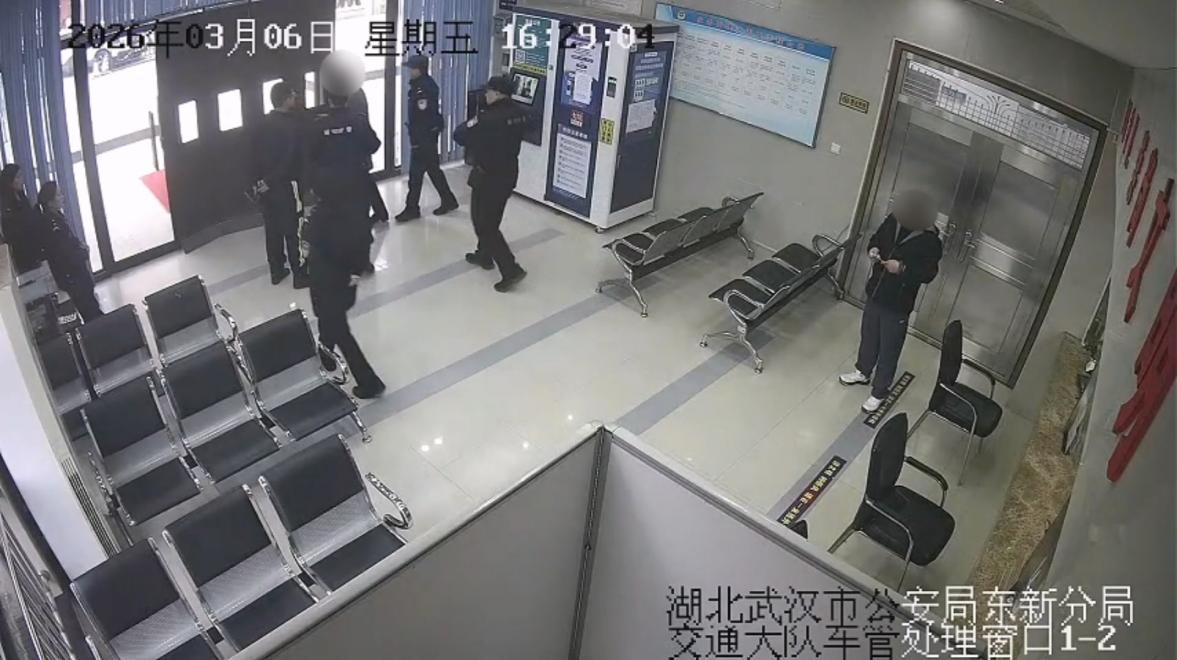 2026年3月6日下午,武汉市公安局武汉东湖新技术开发区分局交通二中队在车管所窗口,上演了一场“不动声色”的抓捕,民辅警们默契配合,将一名前来办理业务的网上逃犯抓获。