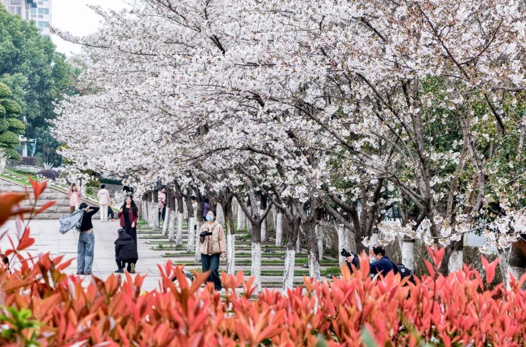 该停车场因周边遍植樱花,每年花季都变身网红打卡地,被市民誉为“武汉最美樱花停车场”。眼下正值最佳观赏期,烂漫春光与城市公共空间相融,让停车之地变身赏樱花园,尽显武汉春日的浪漫与生机。