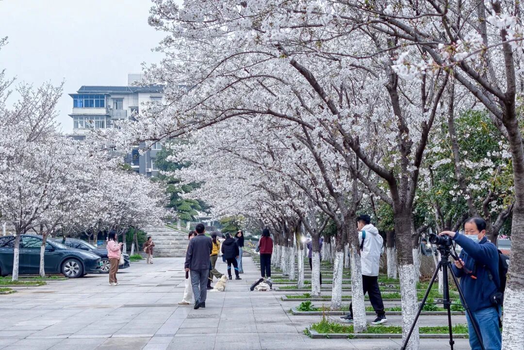 阳春三月,随着江城樱花进入盛花期,位于武昌东湖路的“武汉最美樱花停车场”再度迎来高光时刻,粉白繁花缀满枝头,成为春日里一道独特风景线。
