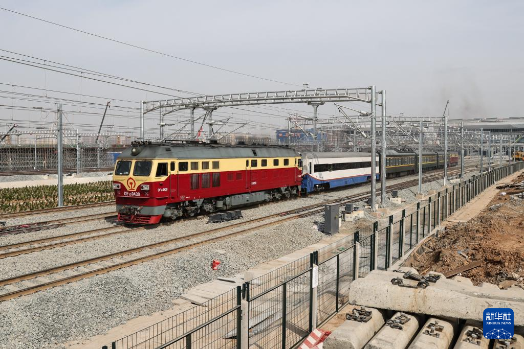 3月29日,检测列车从建设中的西安东站驶出,开往湖北郧西站。新华社发(刘翔摄)