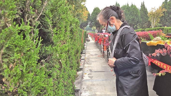 她脚步迟缓却郑重,穿过一排排墓碑,精准停在两座前后相依的墓碑前——这里沉睡着她的丈夫与女儿,是她跨越二十年从未缺席的守望。