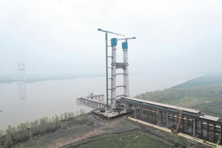 4月1日,由中铁大桥局承建的汉南长江大桥北主塔左幅第34节段浇筑完成,北主塔高度突破200米并达到201.3米,标志着该大桥主塔高空建设进入最后冲刺阶段。汉南长江大桥是武汉都市圈环线高速公路组成部分,是武汉市第13座长江大桥。