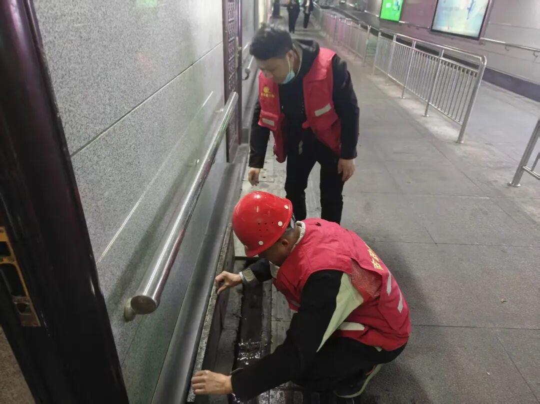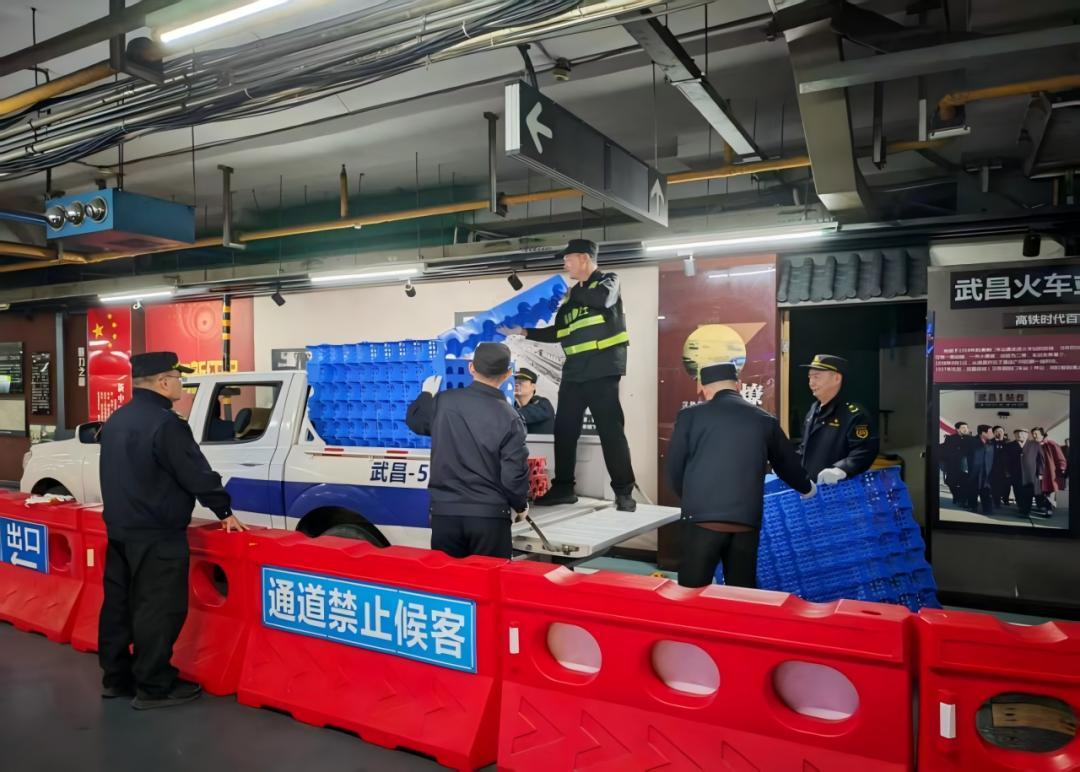 在武昌火车站,武昌站区办提前筹备、足额配备应急器材,共准备跳板20余个、隔离挡板500余米,在站区重点通道、易滑路段及时布设,切实降低地面湿滑带来的安全隐患。同时,对辖区内排水沟渠进行全面疏通清理,确保排水畅通;协同配齐抽水泵等应急排涝设备,做好应急排水准备,全力防范站区积水内涝问题。