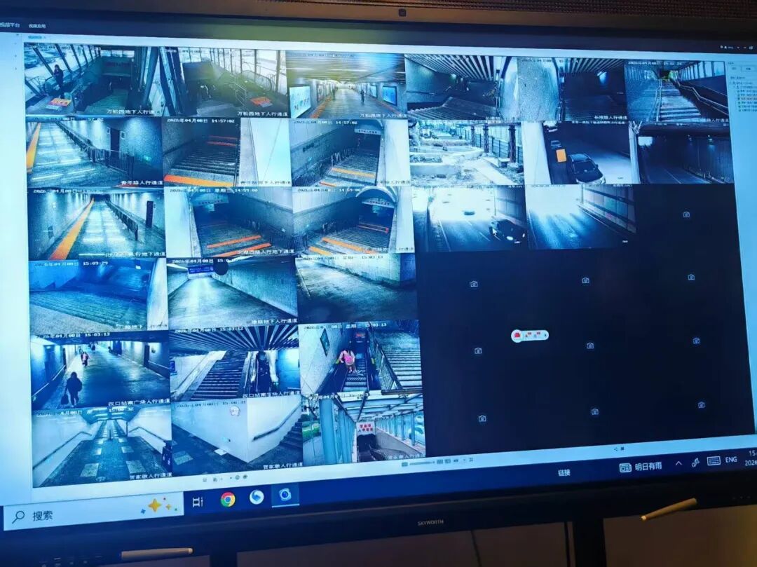 目前,江汉区城管执法局道桥中心启动应急管理预案,对辖区9座地下通道、25座天桥开展全覆盖巡查。重点检查了通道入口及低洼区域的积水情况,并对泵房进行检查,保障抽水泵能够正常运行;对配电箱、照明设施等关键设备进行了绝缘检测和防水检查,防止因潮湿引发漏电或短路。此外,巡查人员还逐段查看墙体、顶板及伸缩缝部位有无渗漏点。在人行天桥方面,重点对桥面、梯道及连接部位的标志牌、广告牌、照明灯架、护栏顶部的装饰构件等高处悬挂物进行拉网式检查,逐一确认固定螺栓、焊接点及抗风拉结是否完好牢固,防止因大风或雨水锈蚀导致松脱坠落。园林部门暂停高空作业,如果遇到倒树断枝等会快速出动人员进行现场抢险,车辆和人员已做好待命准备。