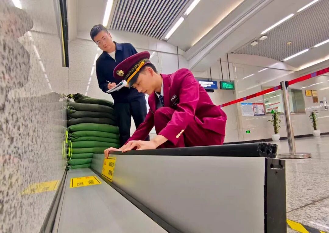 相关负责人介绍,地铁线网所有地面和地下车站的出入口附近,均配有防淹挡板和沙袋,且摆放规范、定点存放,便于工作人员在暴雨来袭时快速取用、紧急布设。