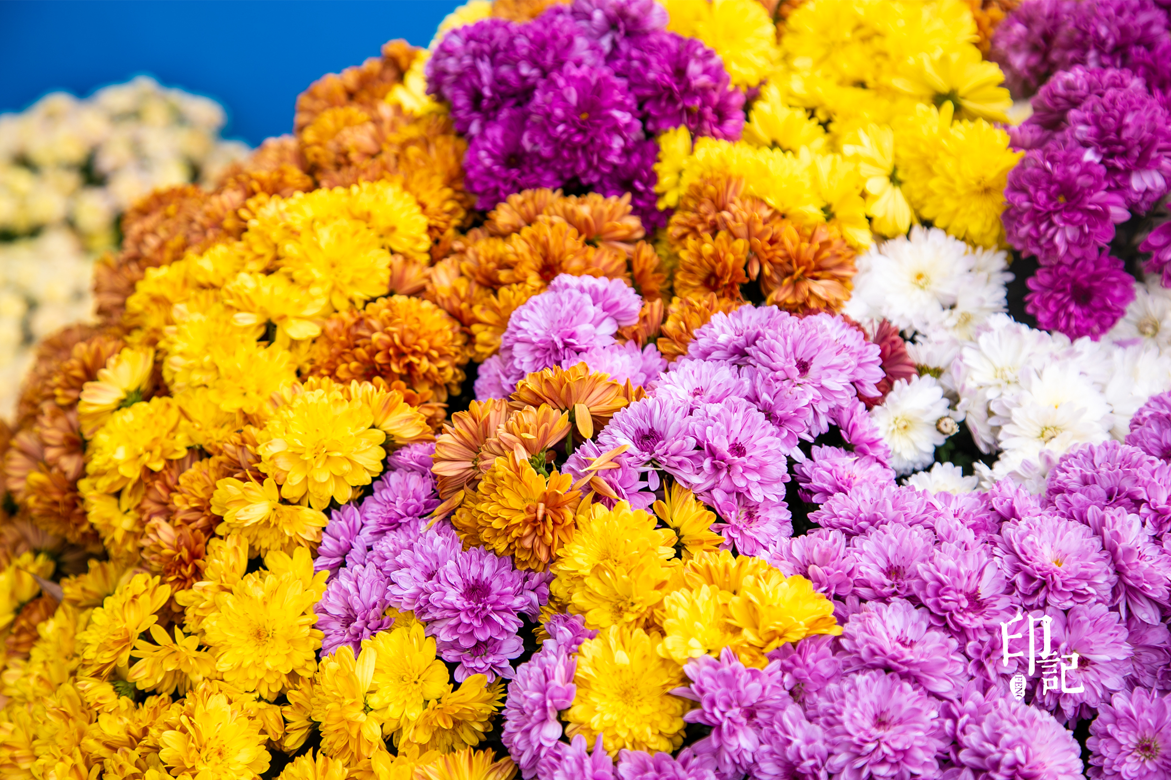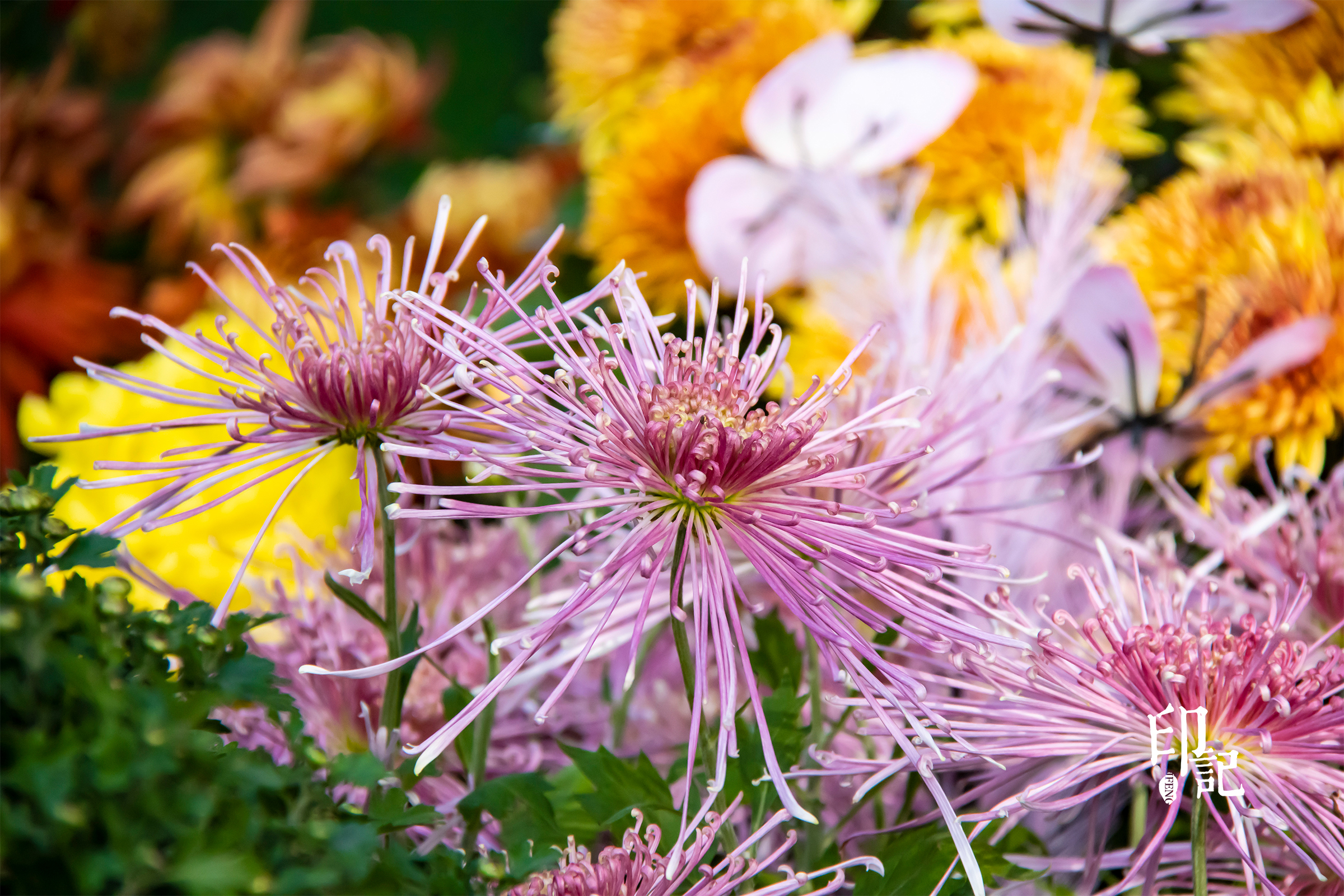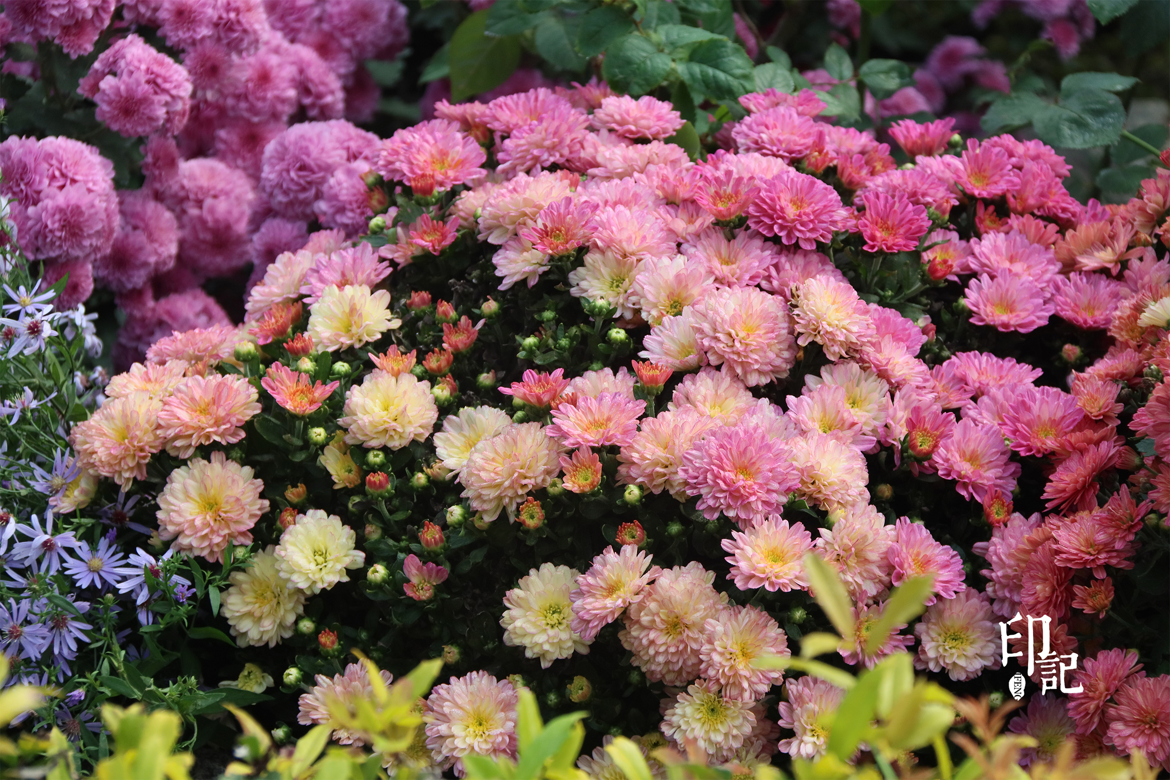 深深浅浅紫色、黄色、粉色的菊花交织在一起,宛如一场视觉的盛宴,流淌着优雅与神秘的韵律。