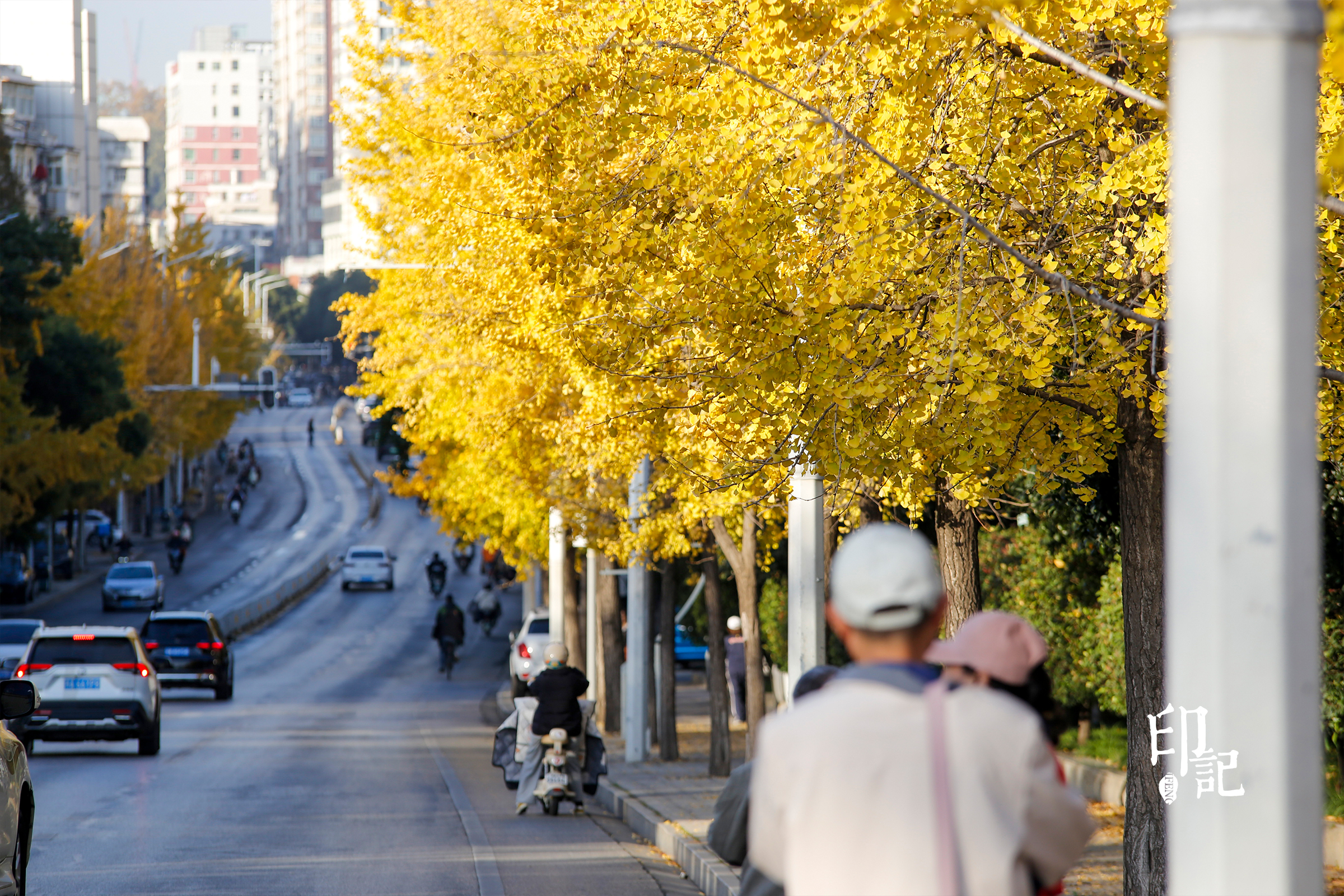 每年深秋初冬,武昌首义路变身“黄金大道”,金黄的银杏落叶铺成“黄金地毯”,与远处的起义门相映成趣。