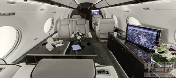 Gulfstream工程师特别注意的客舱环境的设计,机舱的空间更长、更宽,比任何其他同类客舱更加宽敞。还配备了厨房和独立通风的洗手间,舱内气压高度也非常适宜,即使在高空中,乘客感觉也会相当舒适。