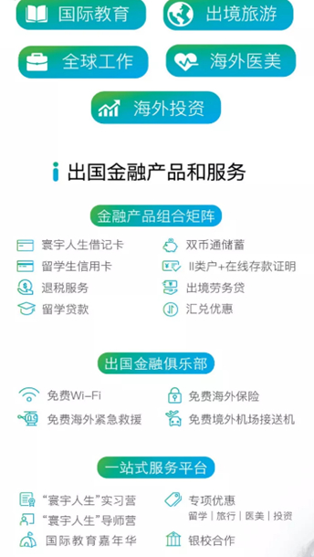 兴业银行武汉分行在相关政策号召下,认真贯彻兴业银行总行“把出国金融作为发展零售业务的重要战略,以跨境教育为重点,强力打造‘寰宇人生’优势品牌”的重要部署,努力满足客户在境外旅游、留学、医疗、 投资、置业等不同领域的出国金融服务需求。