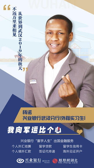10月17日,兴业银行武汉分行聘请五所知名外校大咖成为“寰宇留学智囊团”专家成员,并且现场颁发专家证书。从今年开始,兴业银行武汉分行分批次招募武汉高校外籍留学生来该行实习交流,助力对外窗口服务水平的提升,同时为出国金融客户分享境外留学工作生活方面的经验技巧。活动现场,两位国际留学生收获“寰宇留学智囊团”向导证书。