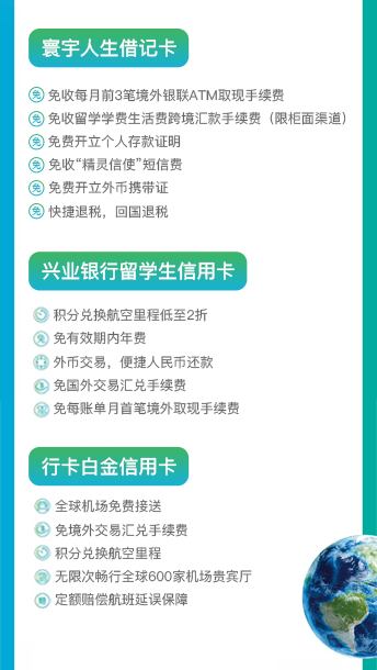 多年来,兴业银行持续深耕出国金融服务,树立了“寰宇人生”出国金融差异化品牌,成立了出国金融俱乐部,打造集金融产品与非金融产品高度融合的国际教育一站式服务平台,接连推出了境外汇款免费、留学贷款保证金放大20倍等创新产品。为消费者提供更专业、更全面、更便捷的“一站式”出国金融服务,真正实现以客户为中心,为客户创造价值。[详情]